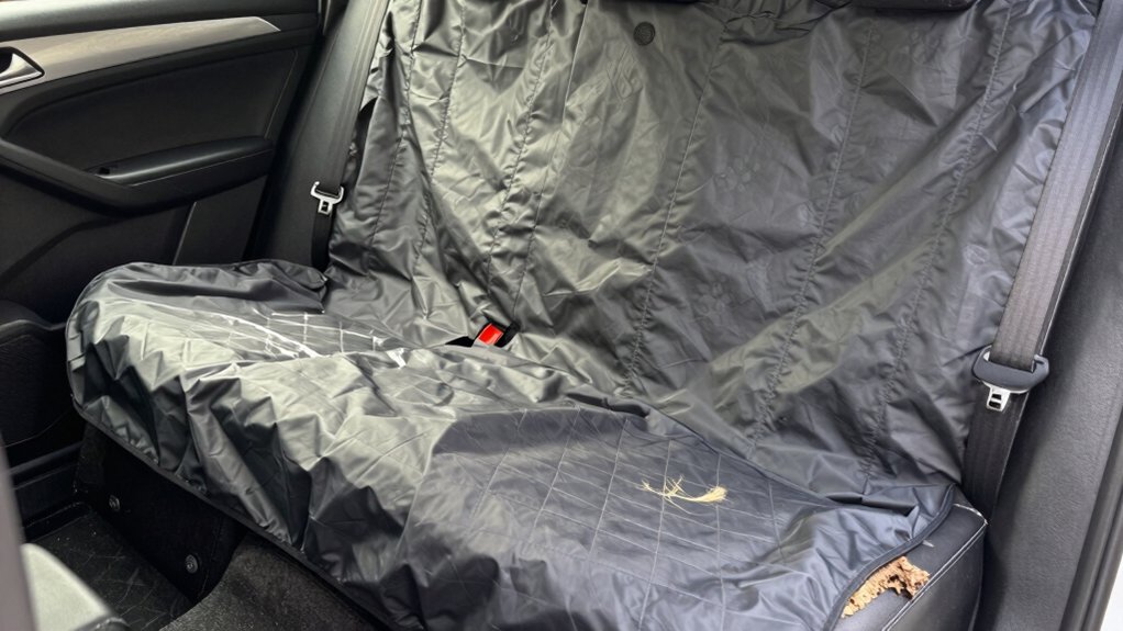 When your dog moves around during a ride, a cover that slips can turn a calm trip into a hazard. You need non-slip stability to keep your pet safe during sudden stops or turns. Look for a cover with a PVE nonslip underside—this base grips your car seat firmly. Anti-slip rubber patterns or textured grips also prevent sliding. Features like seat anchors, Velcro openings, and adjustable headrest straps keep the cover locked in place. Side flaps add extra security by hugging the seat edges tightly. These stability elements work together so the cover won’t shift, even on bumpy or sharp turns. Heavy-duty designs are tested to stay put under real driving conditions. You’ll drive with more confidence knowing your dog isn’t sliding around. A stable cover means better safety, control, and comfort for both of you every time you hit the road.