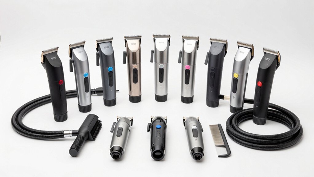 You’ll cut cleanup time in half with these top dog grooming kits featuring built-in vacuums. Models like the oneisall and Buenkee offer strong 15,000Pa suction, quiet operation under 60dB, and large 2L dust cups. They trap 99% of loose hair and use HEPA filters to keep your air clean. Most include clippers, combs, and tools for a full groom. You’ll stay organized with compact storage and breeze through sessions. Pick one that fits your dog’s coat and your space—you’ll see why so many pet owners swear by them.