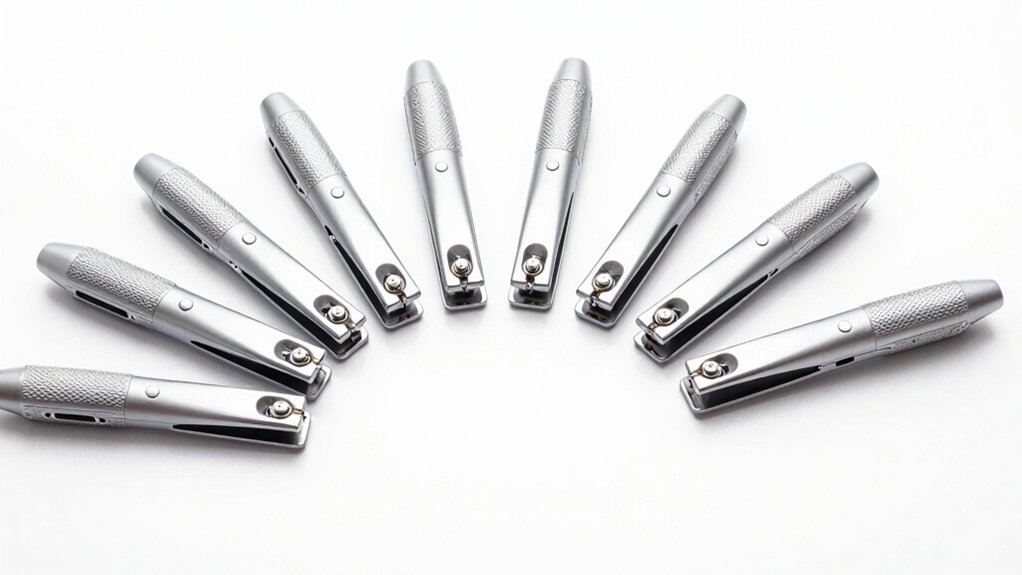 A sharp stainless steel blade is your best bet for clean, precise cuts that protect your dog’s nails and prevent pain. You’ll avoid the risks of uneven trimming or splintering that come with dull or plastic blades. Opt for clippers with a safety guard—it keeps you from cutting too deep and lowers the chance of hitting the quick. Semi-circular blades give you better visibility, so you can see exactly where you’re cutting and trim with confidence. Some models hide a nail file in the handle, letting you smooth rough edges right after cutting—super convenient for complete care. Make sure the blade works with an ergonomic handle; it reduces hand strain and gives you more control, especially during longer grooming sessions. You’ll cut accurately and keep your dog calm. Prioritize strong, well-placed blades, and you’ll make every trim safer and smoother.