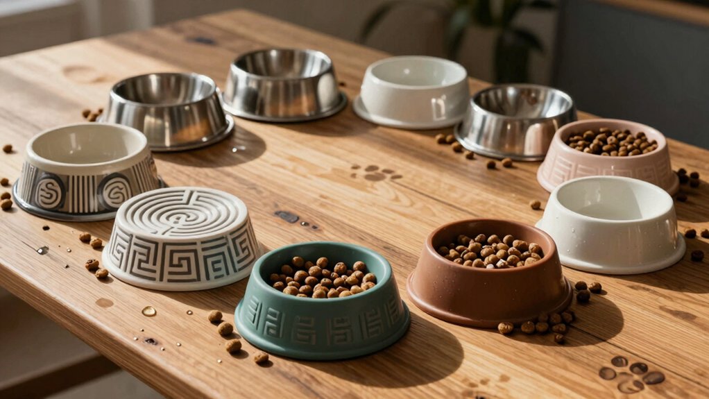 You’re tackling fast eating the smart way with slow feeders that cut gorging by up to 10X. Pick from maze-based bowls like Outward Hound or slip-proof silicone inserts that fit your current bowl. They’re made from safe, durable materials and handle wet or dry food with ease. Dishwasher-safe designs mean cleanup’s a snap. Find the right fit for your dog’s size and eating style—your pup’s digestion will thank you, and you’ll discover even better solutions ahead.