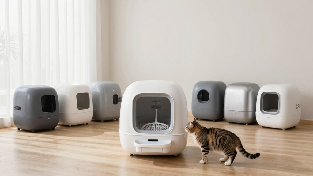 You’ll love how these 9 top self-cleaning litter boxes for 2026 make cleanup effortless with app control, ultra-quiet motors under 35 dB, and smart sensors that stop instantly when your cat’s near. Many track weight and bathroom habits, giving you health insights while keeping odors locked away. With spacious designs for multiple cats and sealed waste bins lasting up to 15 days, you stay in control with minimal effort—there’s even more to uncover about how they simplify your routine.